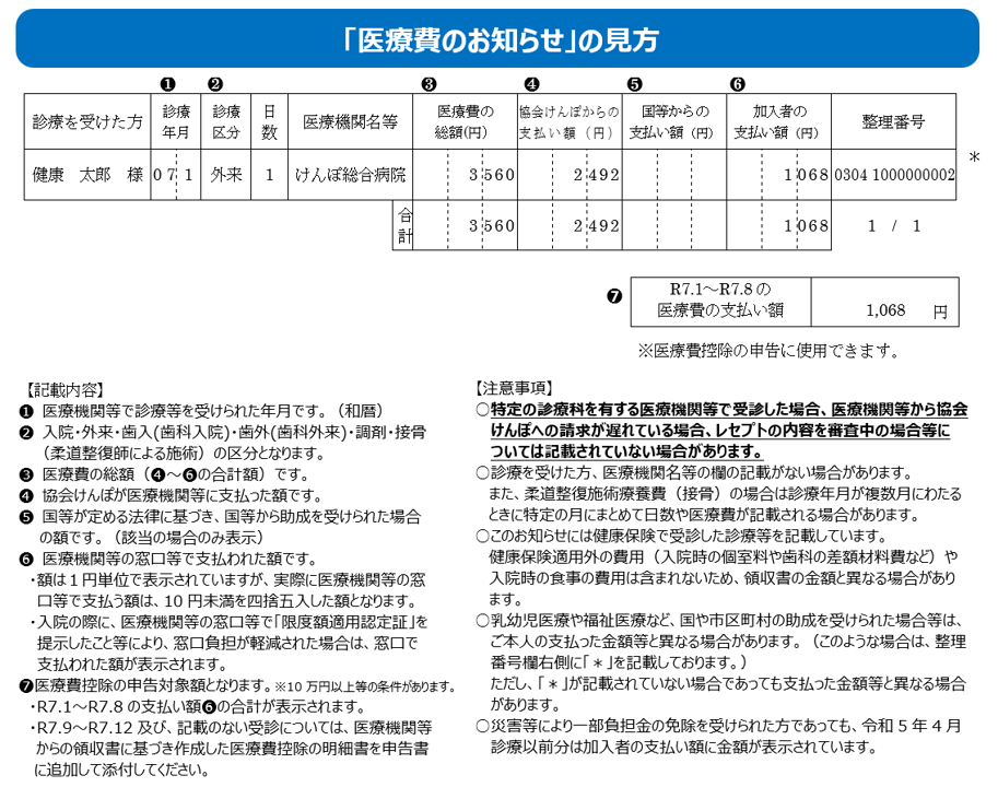 例:令和7年12月までの受診分が記載された医療費のお知らせは、令和8年3月上旬より発行可能となります。