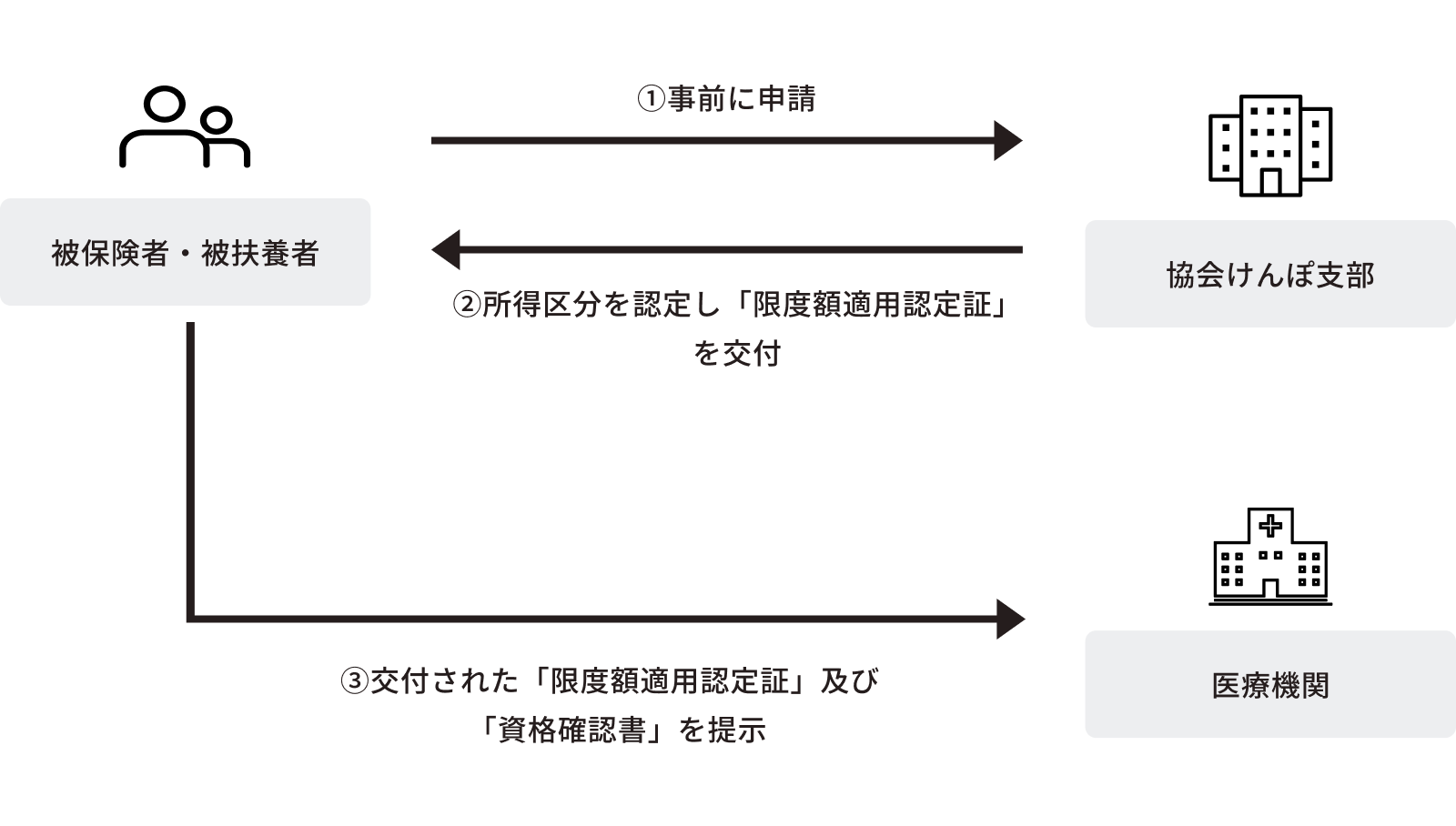 「限度額適用認定証」の交付を受けるためには予め申請が必要です。