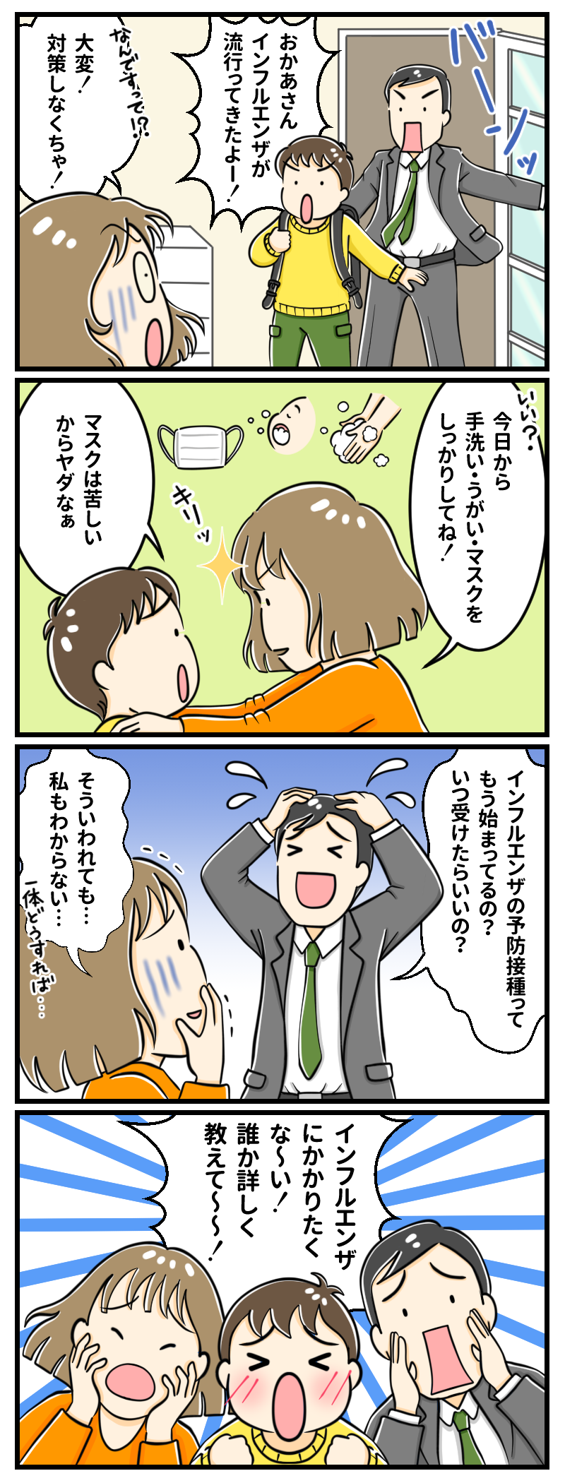 流行時期は例年12月~3月ごろなので、接種のタイミングは10月~12月がおすすめです。