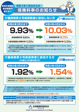 令和4年3月分保険料(疾病任意継続被保険者の方については4月分保険料)からの保険料率については、以下のとおりとなりますので、お知らせいたします。
