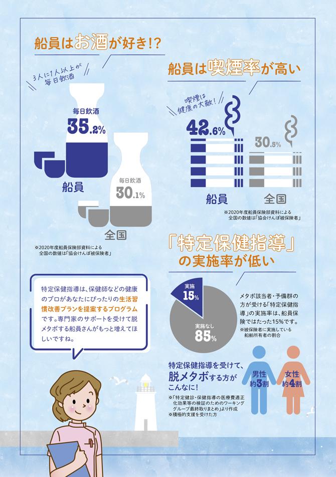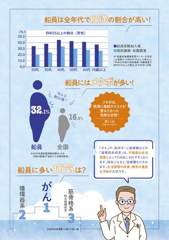 船員向け健康づくり冊子『ヘルスコンパス』より抜粋しています。画像内のページ番号は、冊子『ヘルスコンパス』のページ数になります。