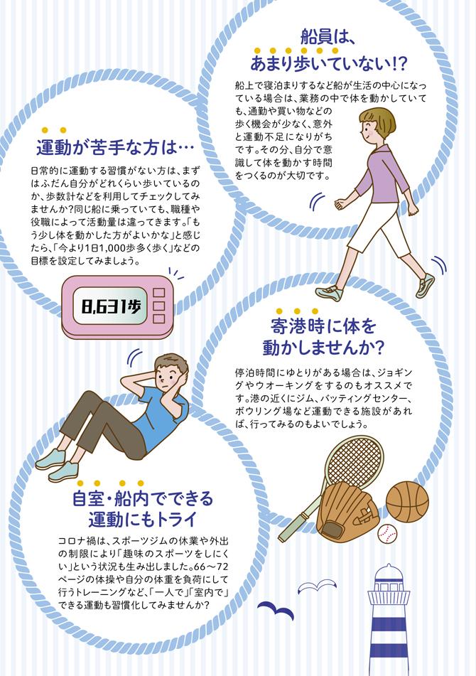 船員向け健康づくり冊子『ヘルスコンパス』より抜粋しています。画像内のページ番号は、冊子『ヘルスコンパス』のページ数になります。