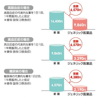 効き目や安全性は新薬と同等ですが、一般的に新薬より安価です。