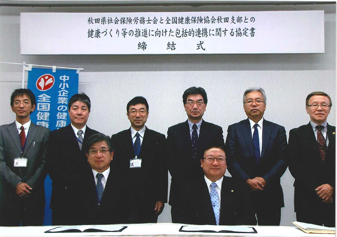 平成28年11月1日、協会けんぽ秋田支部と秋田県社会保険労務士会との間で、健康づくり等の推進に向けた包括的連携に関する協定書を締結しました。