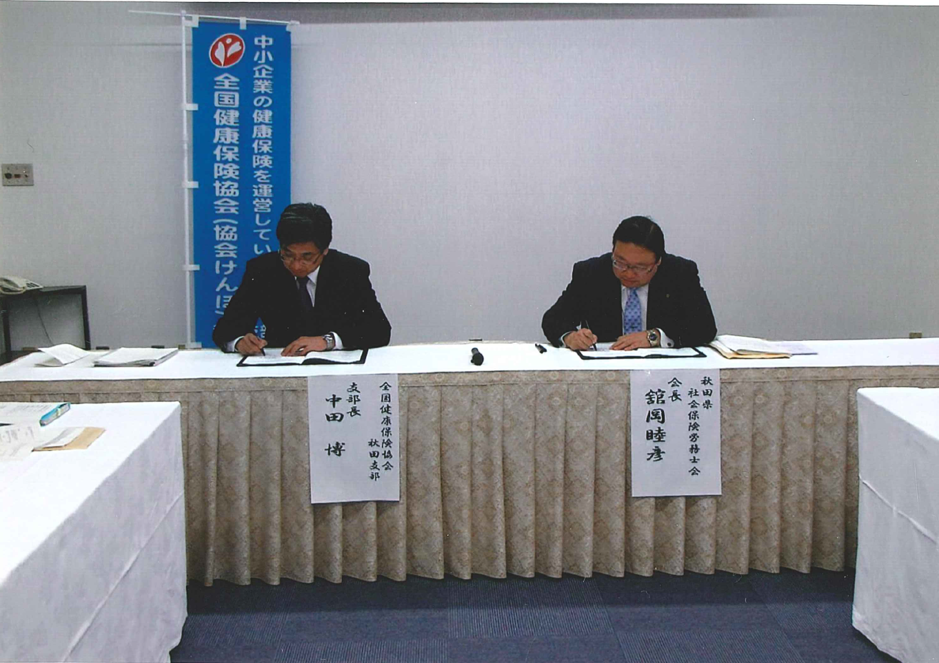 秋田県社会保険労務士会との締結式の様子