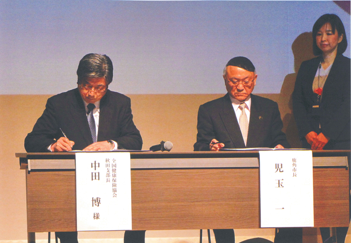 平成30年2月20日、協会けんぽ秋田支部と鹿角市との間で、健康づくりの推進に向けた包括的連携に関する覚書を締結しました。