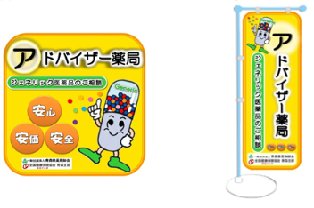 目印となるように、アドバイザー薬局へはこちらのステッカーとミニのぼりをお送りしています。