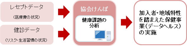 協会けんぽでは、健康保険事業や健診事業の実施により、加入者の皆さまの健診データ、医療費データを保有しています。