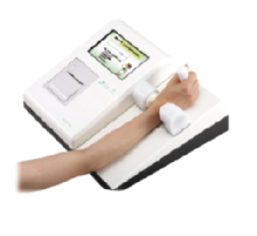 生活習慣の改善に、指先で実年齢に対する血管年齢を簡単に測定。測定時間は約60秒。