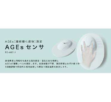 血管採取が不要、測定時間はわずか数十秒。指先に光を照射しAGEsの蓄積レベルを測定します。
