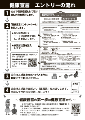 協会けんぽ岐阜支部は、健康経営の更なる普及・推進および健康経営に取り組む事業所さまのサポートを目的として、令和5年4月1日から健康宣言事業『協会けんぽと健康宣言』を開始しています。