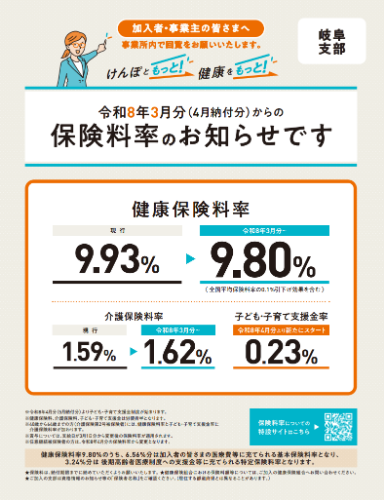 岐阜支部で作成し、毎月各事業所へお送りしています。(日本年金機構の「納入告知書」に同封)