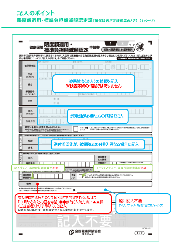 - 被保険者の市町村民税が非課税の方が入院時等の窓口負担を軽減したいとき