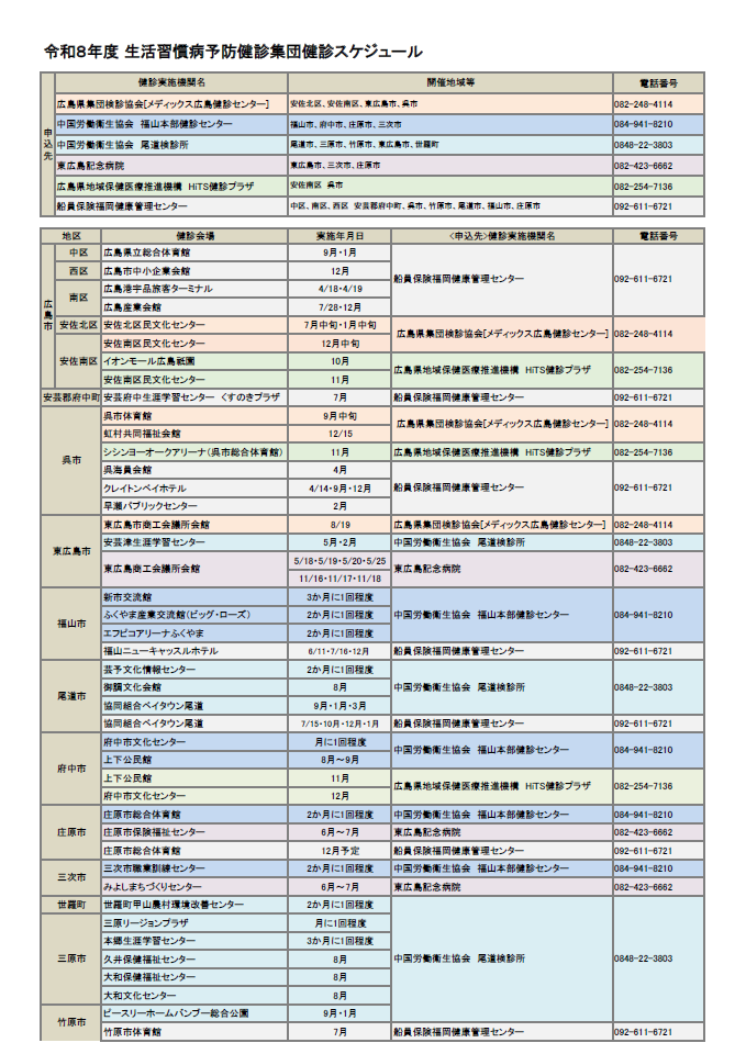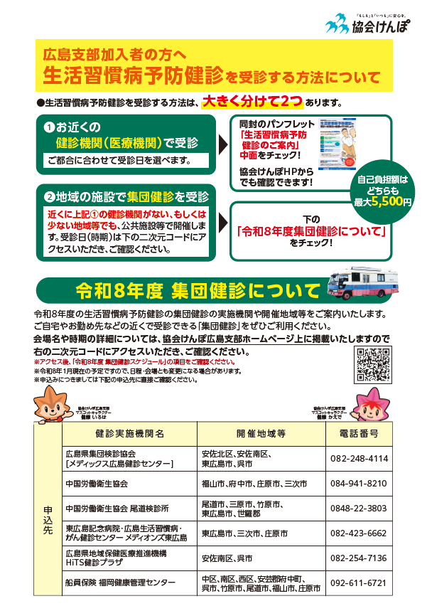 生活習慣病予防健診等パンフレット、健診機関一覧表及び集団健診スケジュール(PDF)は下記から