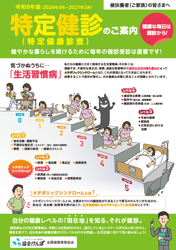 『家族(被扶養者)の特定健診の受診勧奨をしていますか?』に対応したチラシです。