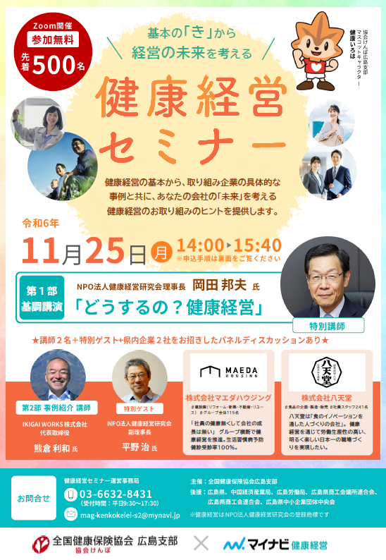 令和6年11月25日に健康経営セミナーを開催しました(協会けんぽ広島支部×マイナビ健康経営)