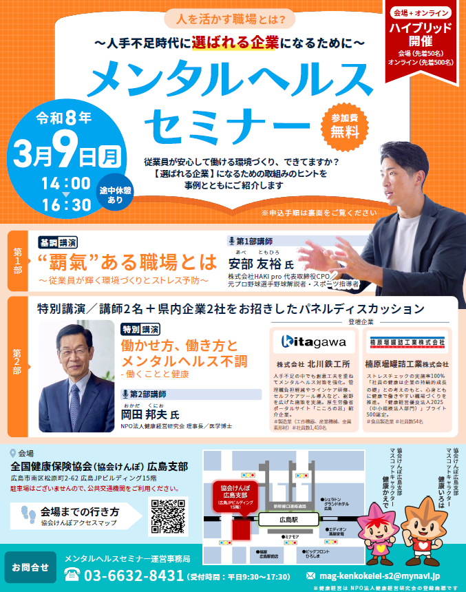令和8年3月9日にメンタルヘルスセミナーを開催します(協会けんぽ広島支部×マイナビ)