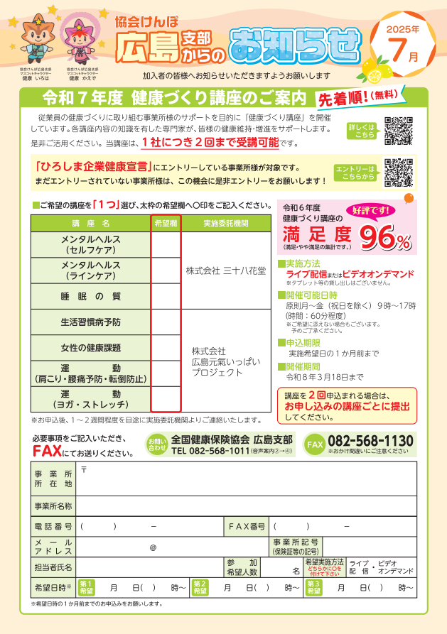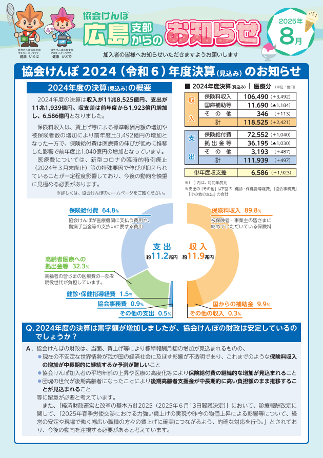 【広報制作物】協会けんぽ広島支部からのお知らせ(納入告知書同封リーフレット)
