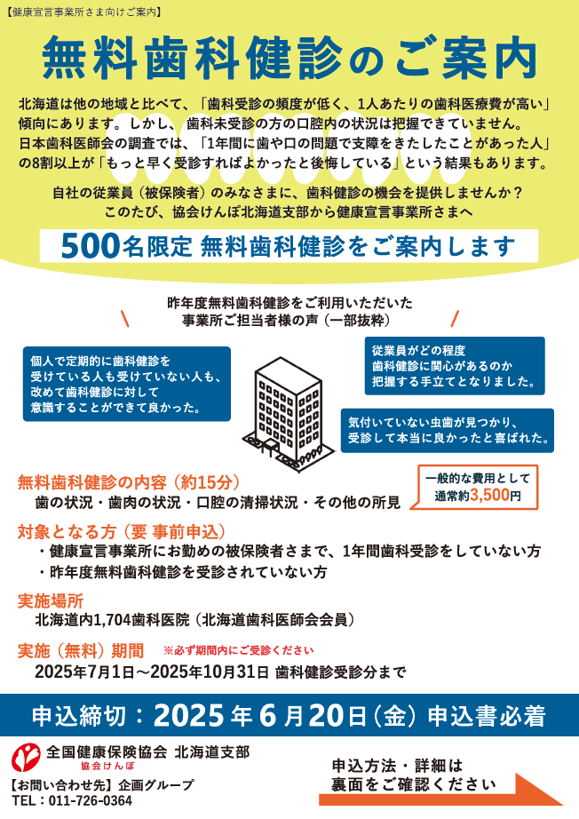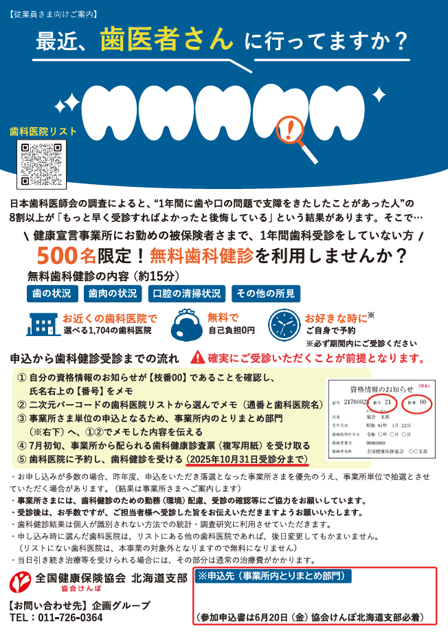 歯科健診お申し込みの従業員様へ