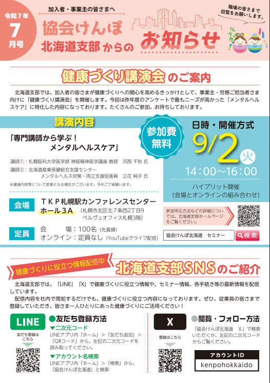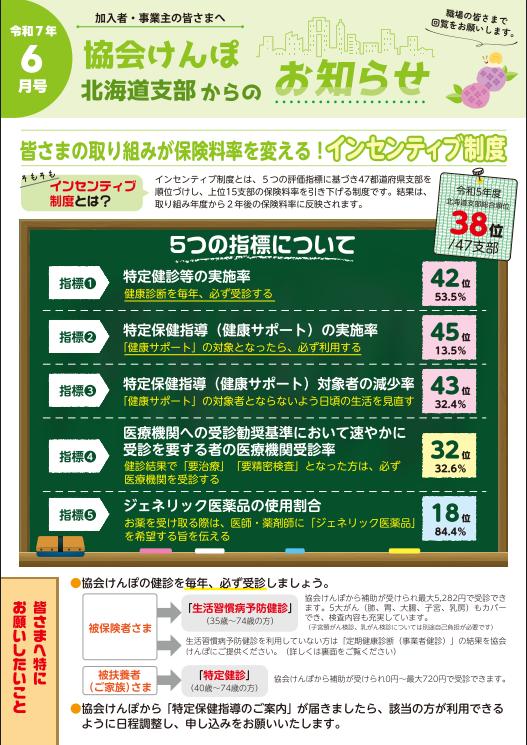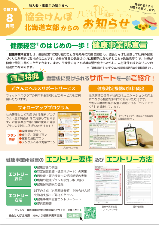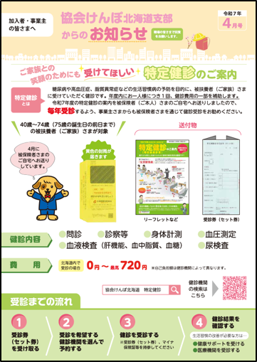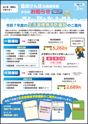 日本年金機構から事業所さまあて送付される「納入告知書」に同封している、協会けんぽ北海道支部作成のリーフレットです。