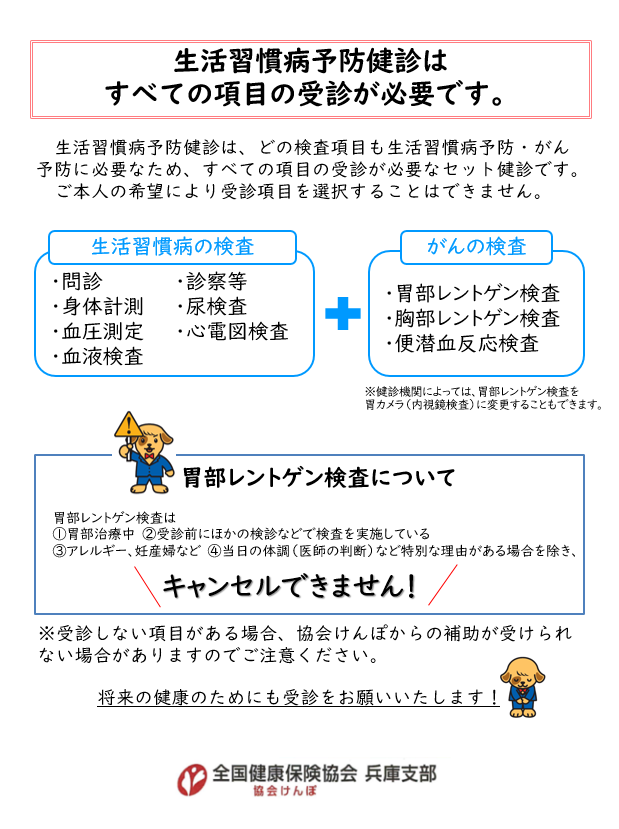 受診しない項目がある場合、協会けんぽからの補助が受けられない場合がありますので、ご注意ください。