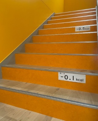 わが社の健康宣言事業所への健康サポートとして、階段用消費カロリーステッカーを無料で進呈いたします!