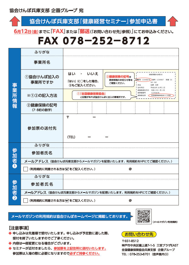 以下の申込用紙をFAXまたは郵送でお送りください。