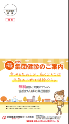 9月下旬に圧着ハガキにてご案内をお送りした40~74歳の被扶養者(ご家族)様