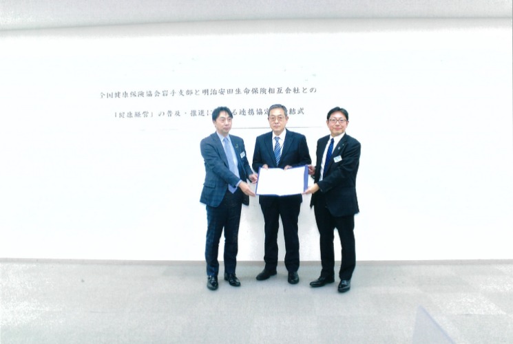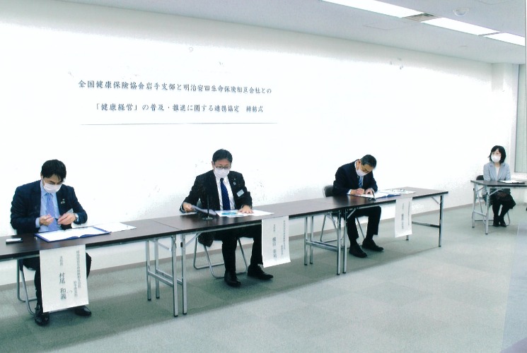 協会けんぽ岩手支部と明治安田生命保険相互会社の協定締結式