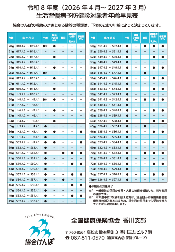 令和8年度生活習慣病予防健診等対象者年齢一覧表はこちら