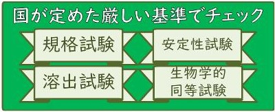 国が定めた厳しい品質基準で承認されます。新薬(先発医薬品)と同様に製造管理や品質管理が厳しくチェックされています。