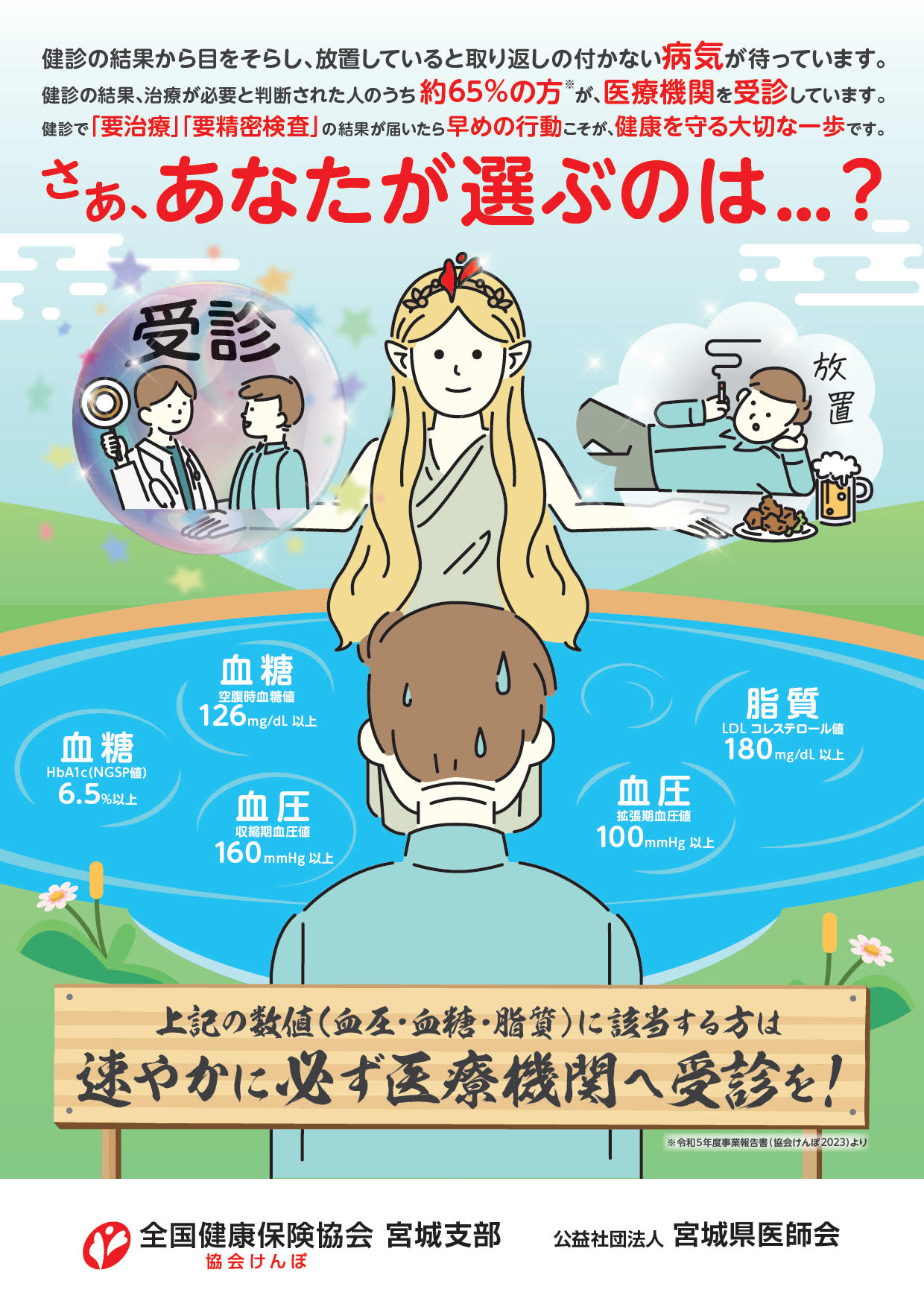 重い病気になる前に、自覚症状の有無にかかわらず医療機関を受診し、将来の病気を予防しましょう。