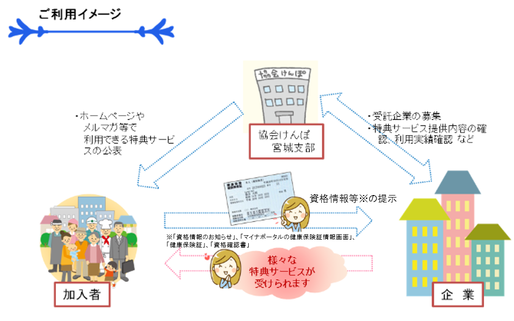 協会けんぽ宮城支部では、加入者の皆様の健康づくりの推進や利益の実現のため、平成27年4月より「協会けんぽ宮城支部 ヘルスアップサービス」を始めました。