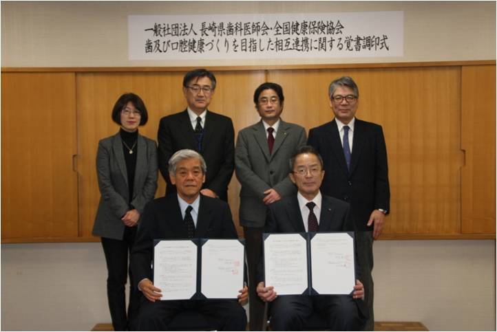 一般社団法人長崎県歯科医師会と全国健康保険協会 長崎支部は、県民の健康づくりの推進に向けて相互の連携を強化する『歯及び口腔の健康づくりを目指した相互連携に関する覚書』を締結しました。
