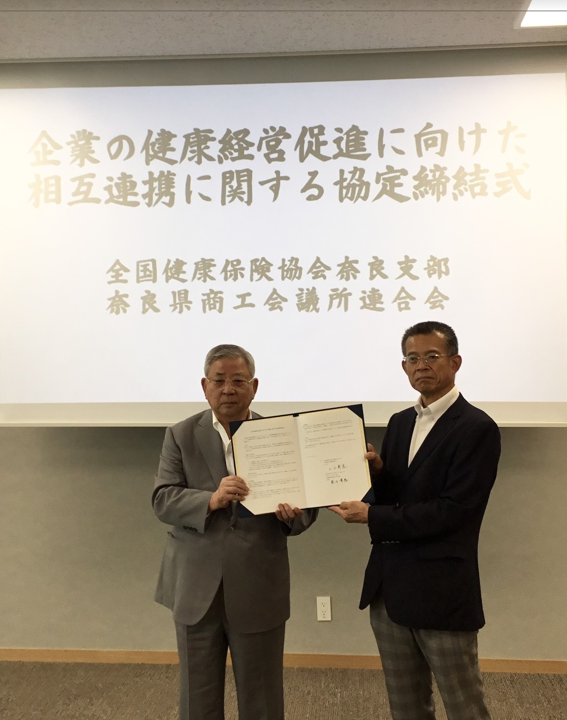 奈良県商工会議所連合会と全国健康保険協会奈良支部は企業の健康経営促進に向けた相互協力・連携に関する協定を締結しました