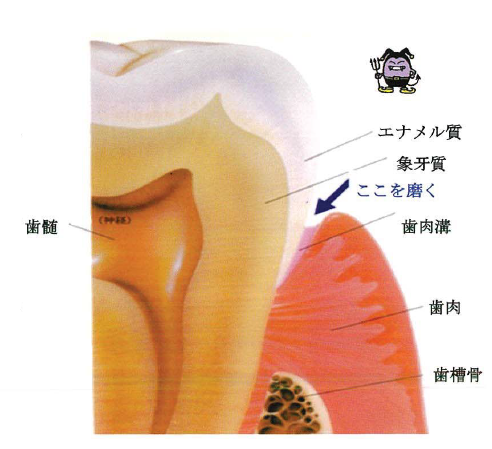そのため、歯みがきは歯と歯ぐきの境目から少し入って歯ぐきの内側が対象になります。