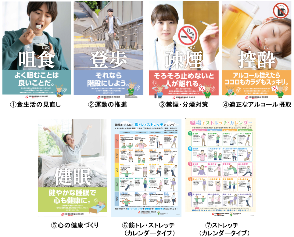 健康づくりに関する全社的な取り組みを支援するために、各種健康づくり促進ポスターを健康宣言事業所さまに提供しています。