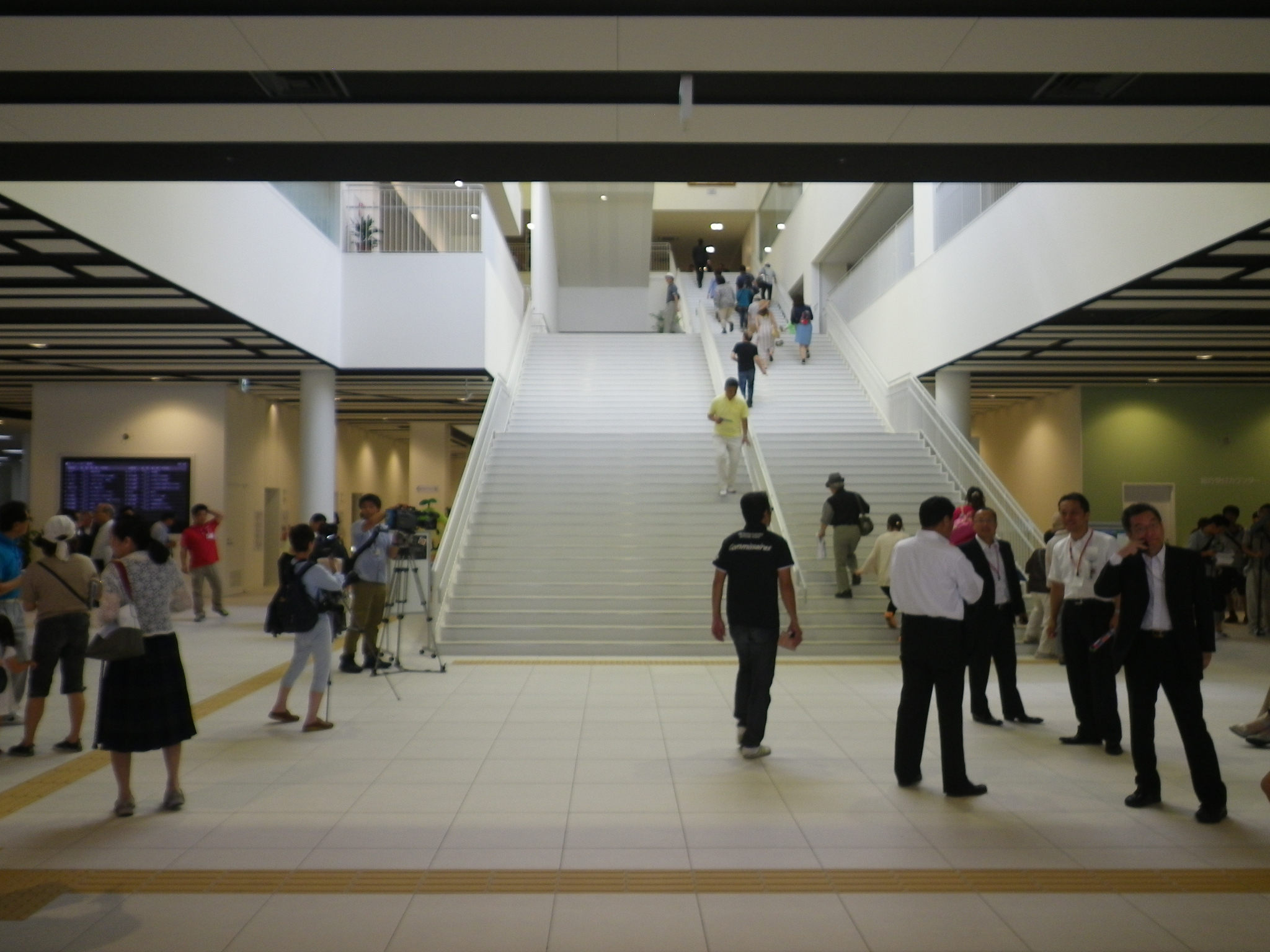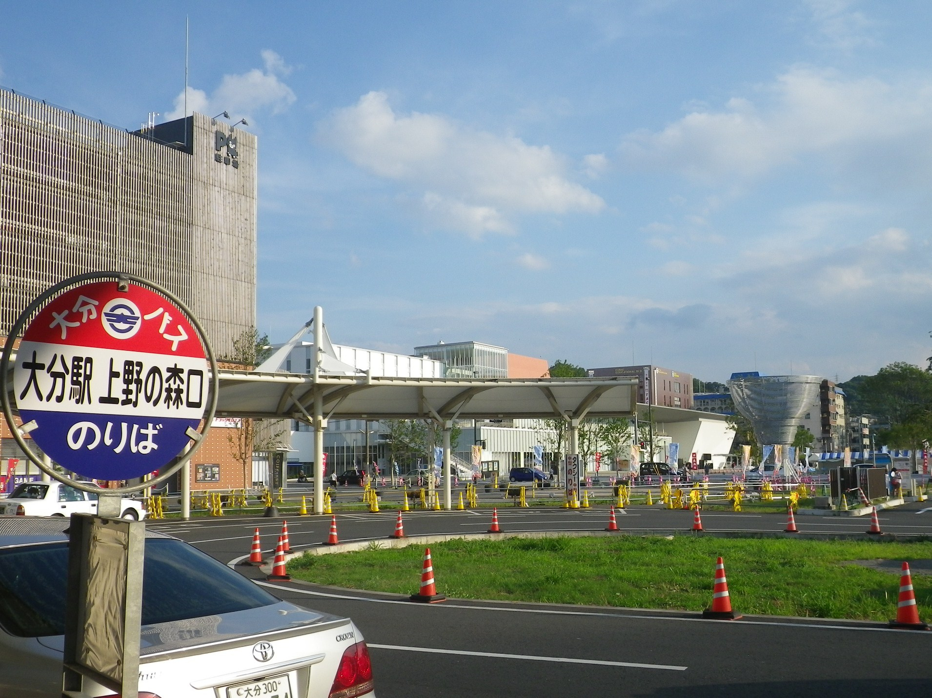 - 大分駅前のバス停で下車の場合は、大分駅 府内中央口(北口)より大分駅に入り、そのまま直進すると上野の森口(南口)へ抜ける事ができます。