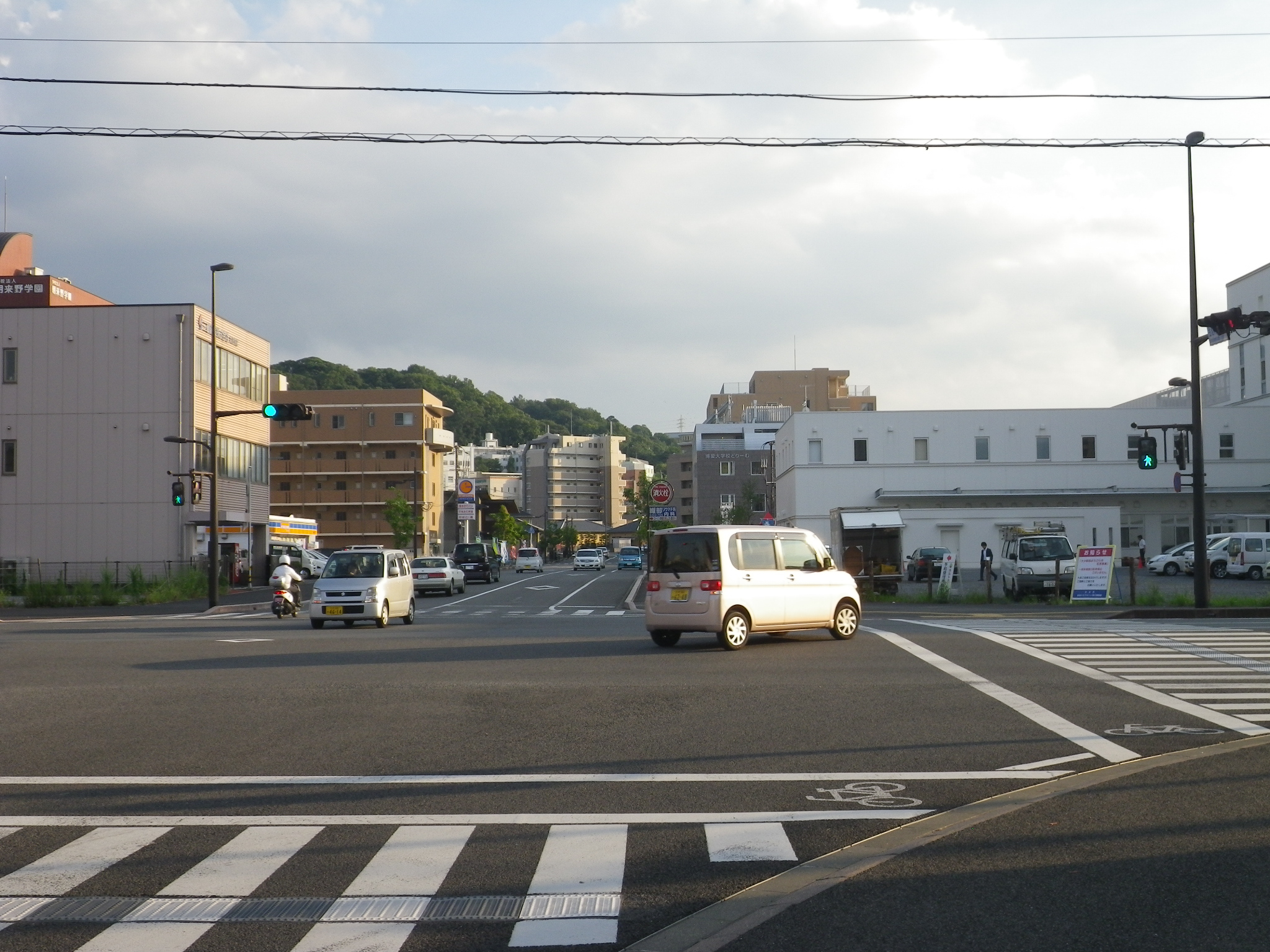 国道210号線(大道方面)からお越しになった場合の大分駅南側の交差点の写真です。