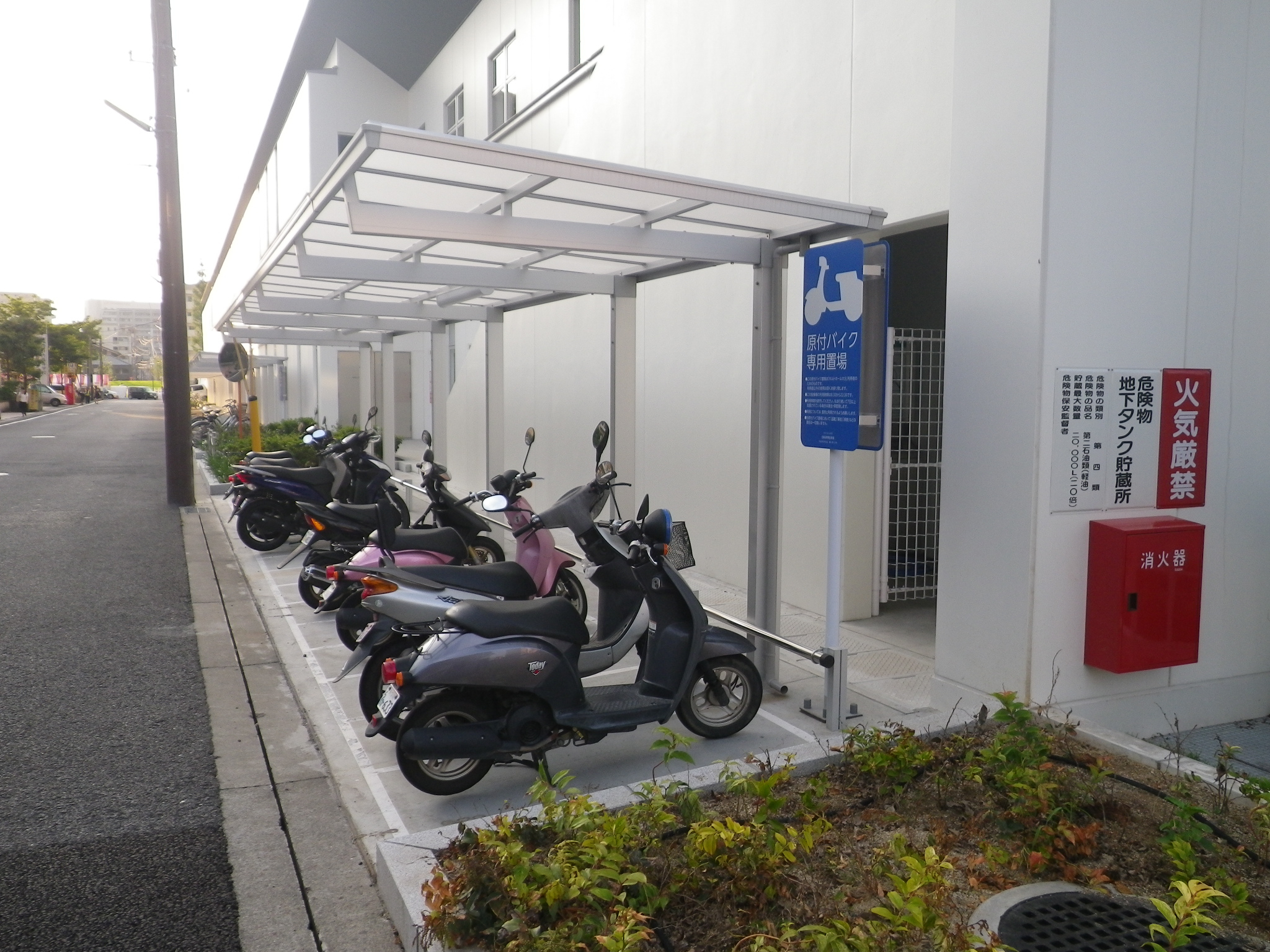 手前のスペースは原動機付二輪の駐輪スペースとなっております。