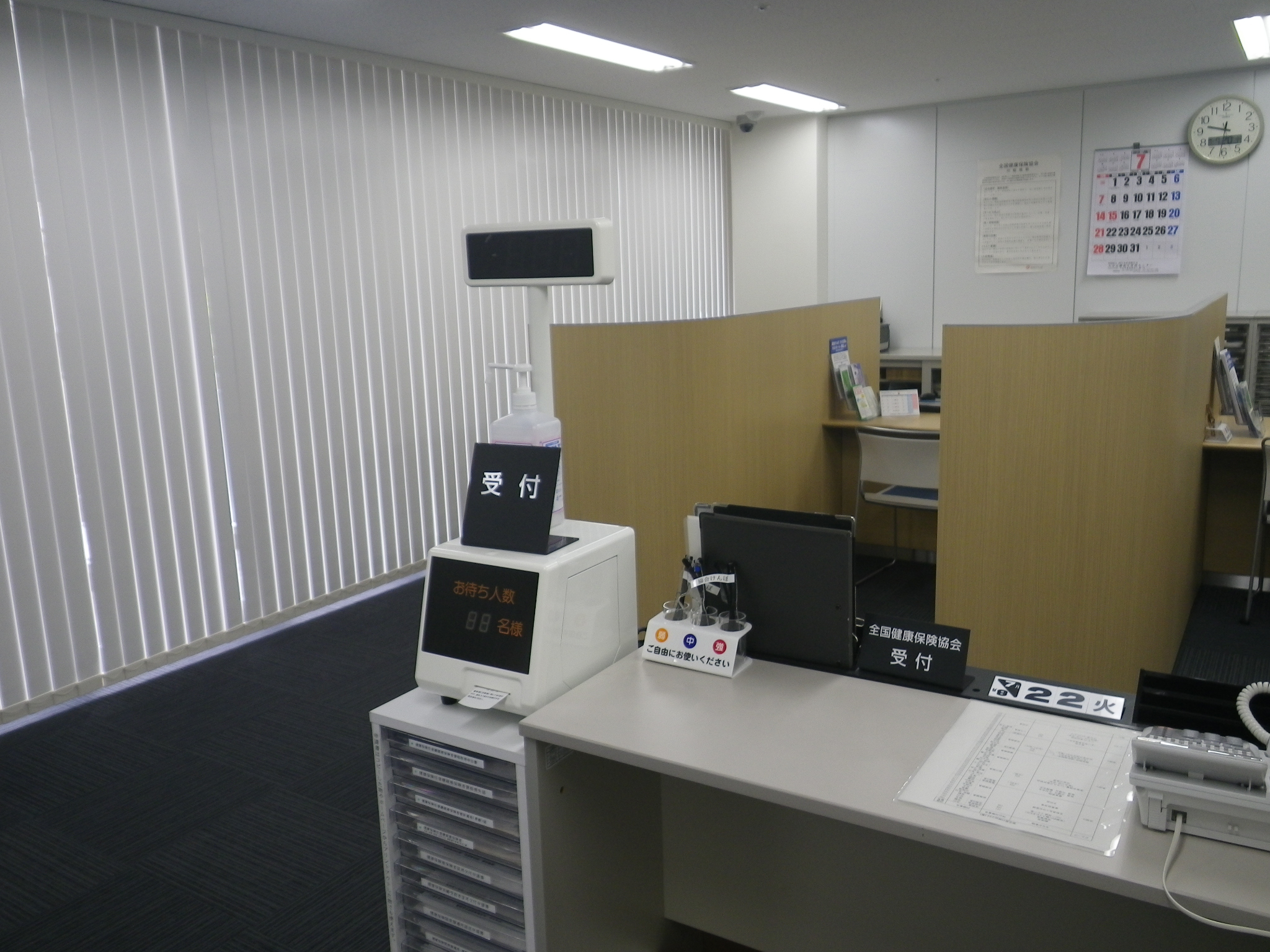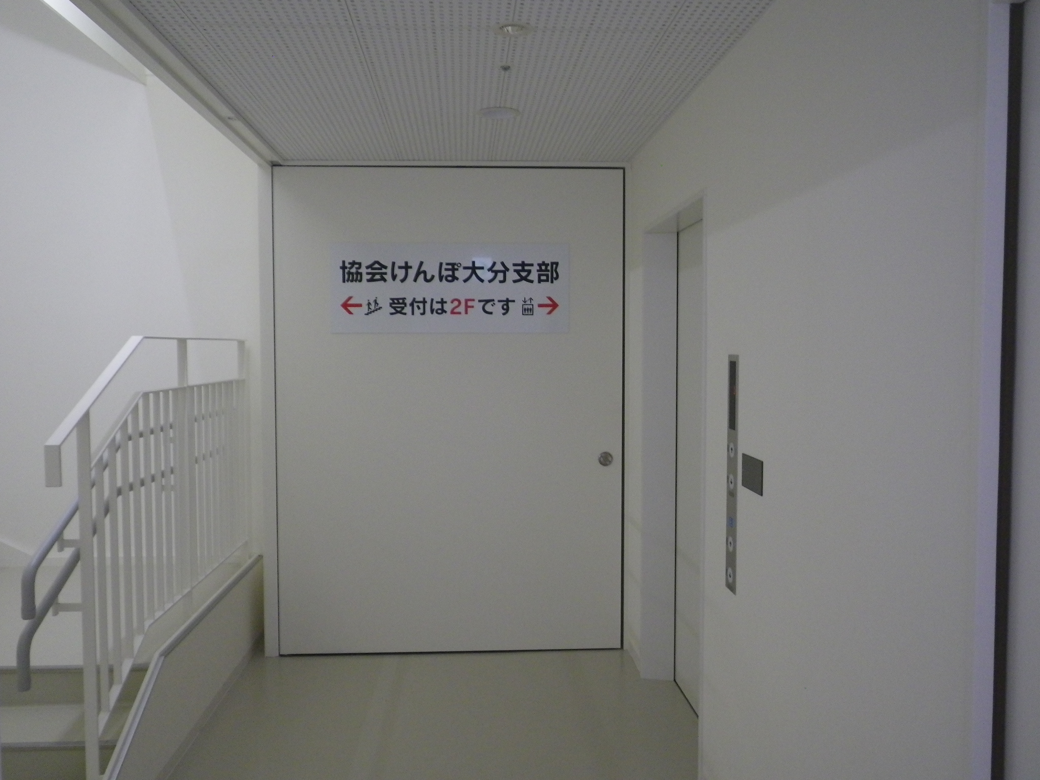 2階へ上がると、通路奥に協会けんぽ大分支部の入口がございます。
