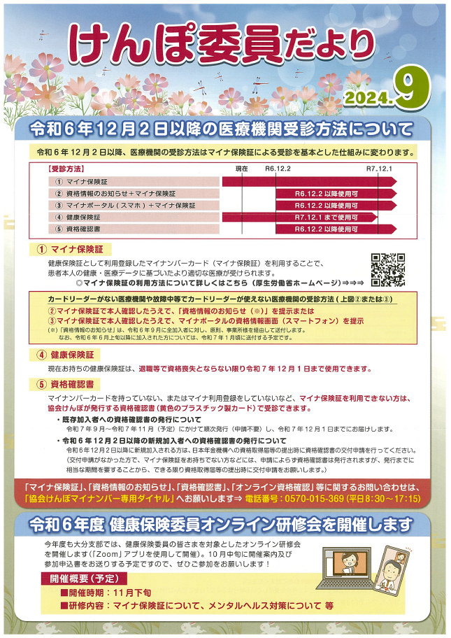 - 令和6年度健康保険委員オンライン研修会を開催します