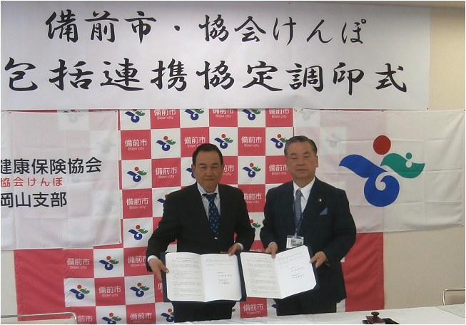 平成26年3月25日、備前市と全国健康保険協会岡山支部は、「健康づくりの推進に向けた包括的連携に関する協定書」を締結いたしました。