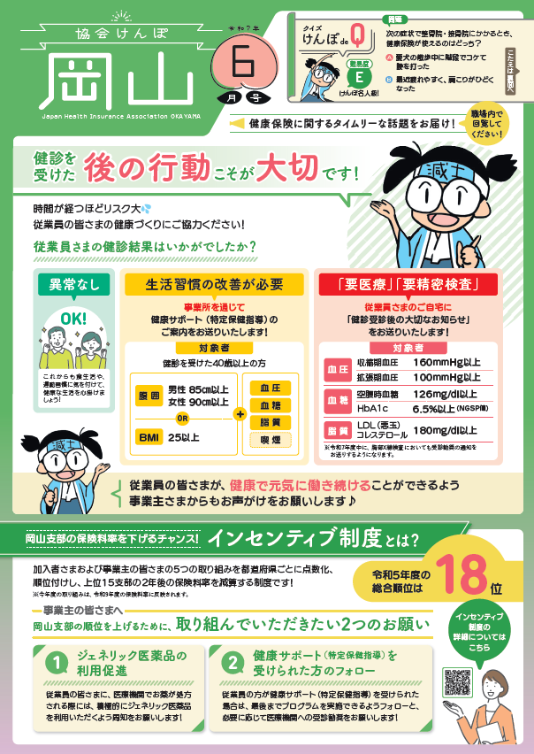 広報紙「協会けんぽ岡山(納入告知書同封リーフレット)」バックナンバー
