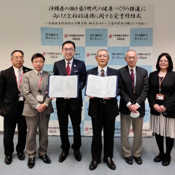 全国健康保険協会沖縄支部と株式会社かんぽ生命保険沖縄エリア本部は、沖縄県の働き盛り世代の健康づくりの推進に向けた包括的連携に関する覚書を締結しました。