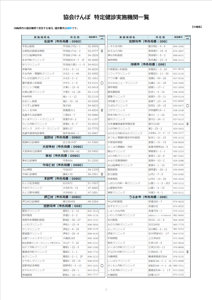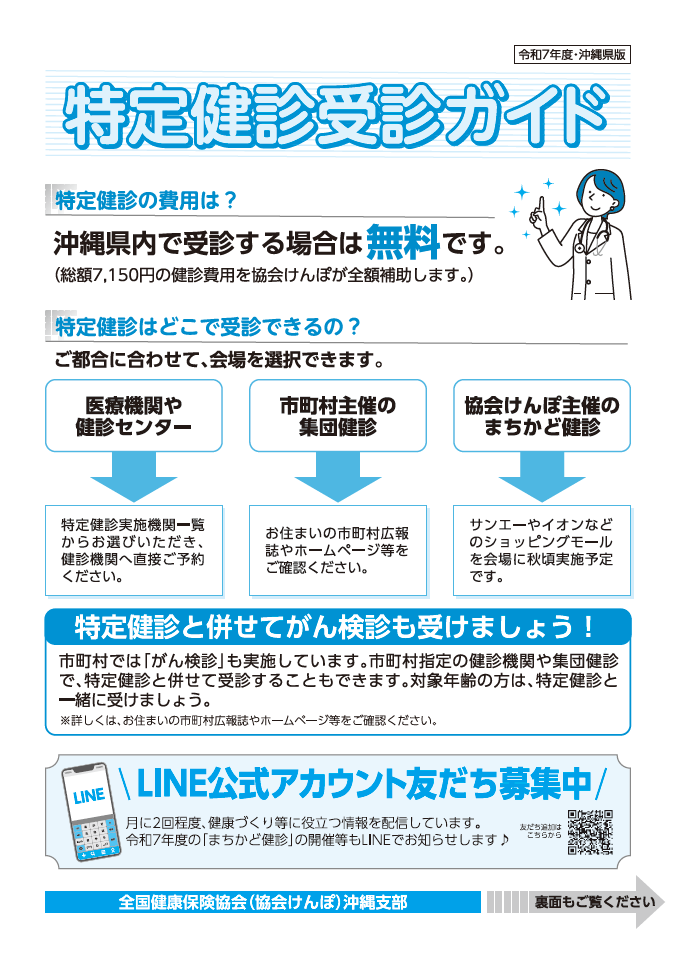2. 令和8年度から、沖縄県内の一部健診機関で850円の自己負担が発生します。詳しくは、健診機関にお問い合わせください。