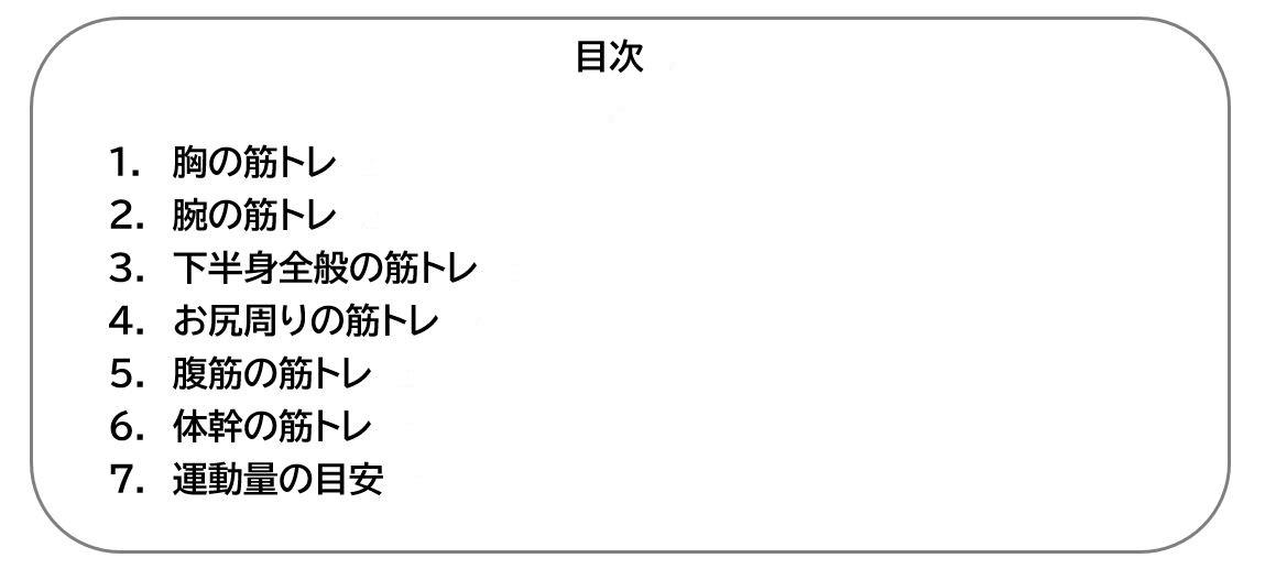 各メニューに動画をつけていますので、事前に動画を観て動作のイメージトレーニングをしてから挑みましょう!