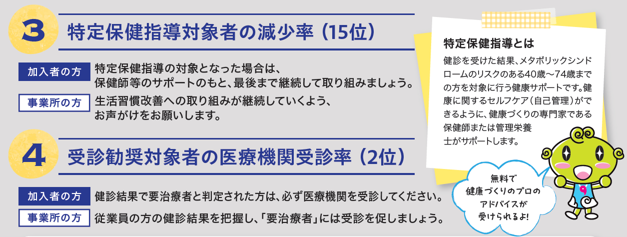 令和4年度の島根支部の総合順位は、協会けんぽ全47支部中第3位となり、インセンティブ(報奨金)を付与されました。これにより、島根支部の令和6年度の健康保険料率は0.08%分引き下げられることとなりました。加入者22万人の皆様および事業主様が、日頃から健康づくりに取り組んでいただいた結果です。