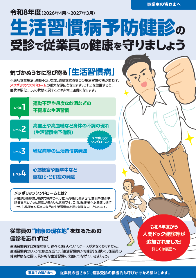 ★「生活習慣病予防健診のご案内」は、加入事業所あてに、令和8年3月中旬に発送しました。