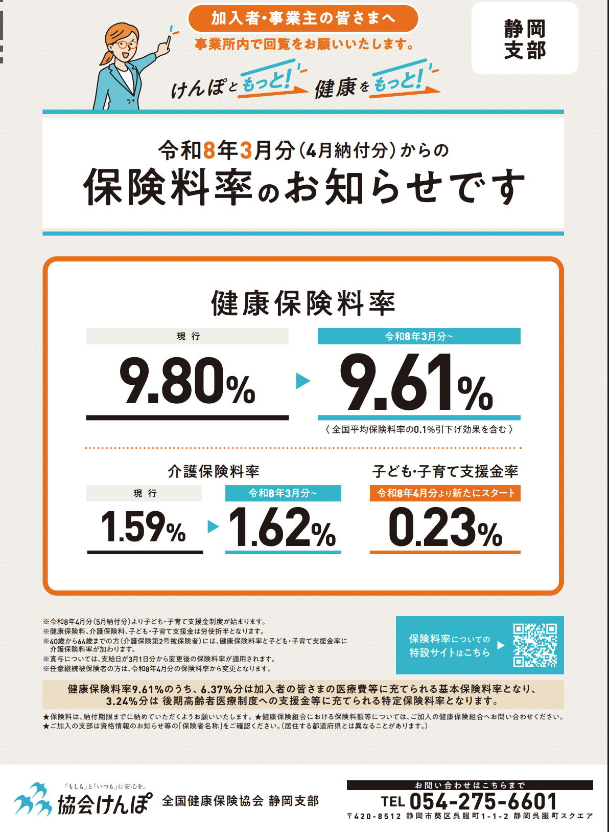 - 令和8年3月分(4月納付分)からの保険料率のお知らせです